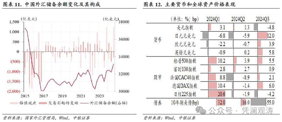 三季度,基础国际出入顺差改善,短期老本外流压力加大,来回要素导致外汇储备钞票减少,但受群众股债双升、非好意思货币反弹影响,汇率和钞票价钱变动引起的正估值效应创历史新高。